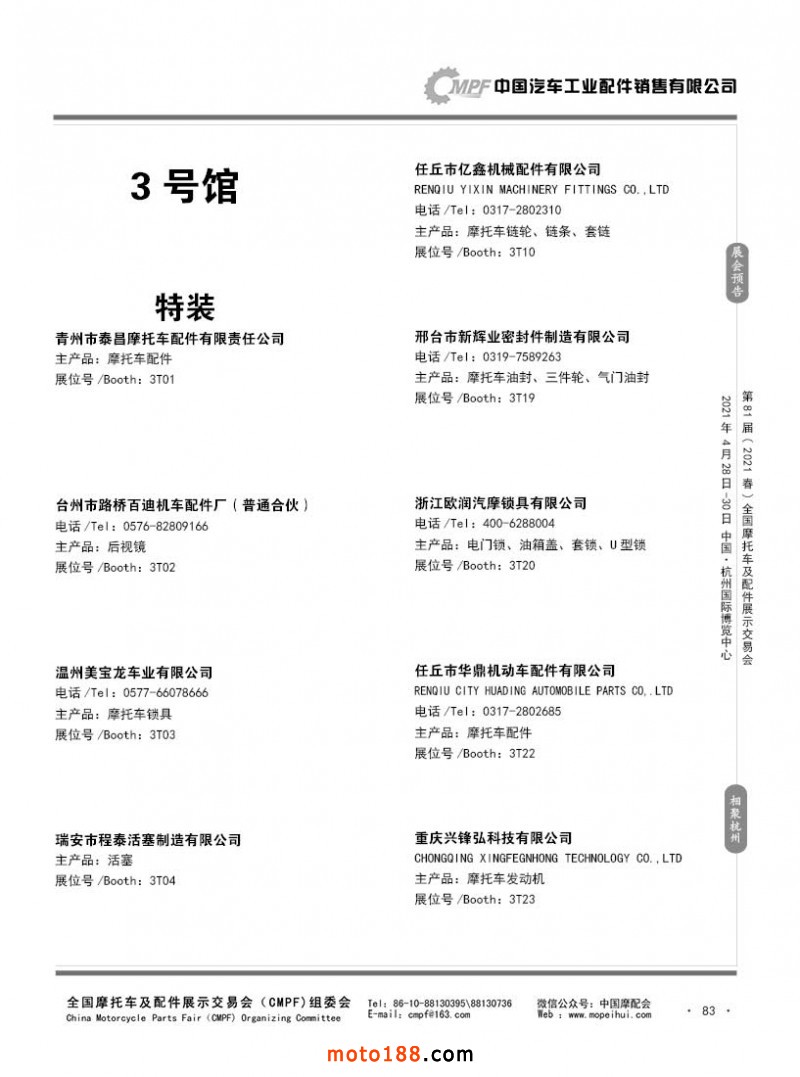 內(nèi)83 第80屆(2020秋)全國摩托車及配件展示交易會(huì)-廣州站參展企業(yè)信息
