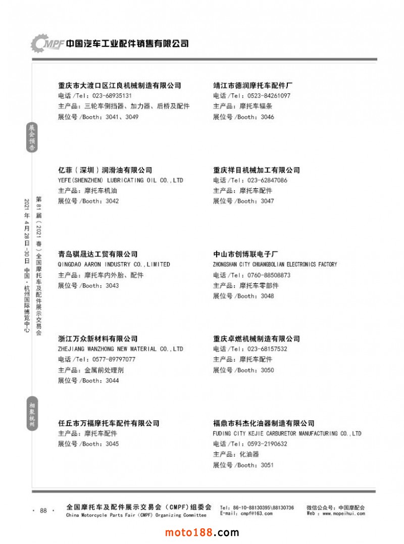 內88 第80屆(2020秋)全國摩托車及配件展示交易會-廣州站參展企業信息