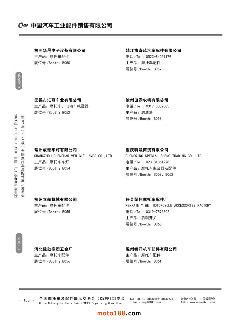 內(nèi)100 第81屆(2021春)全國摩托車及配件展示交易會(huì)-杭州站參展企業(yè)信息