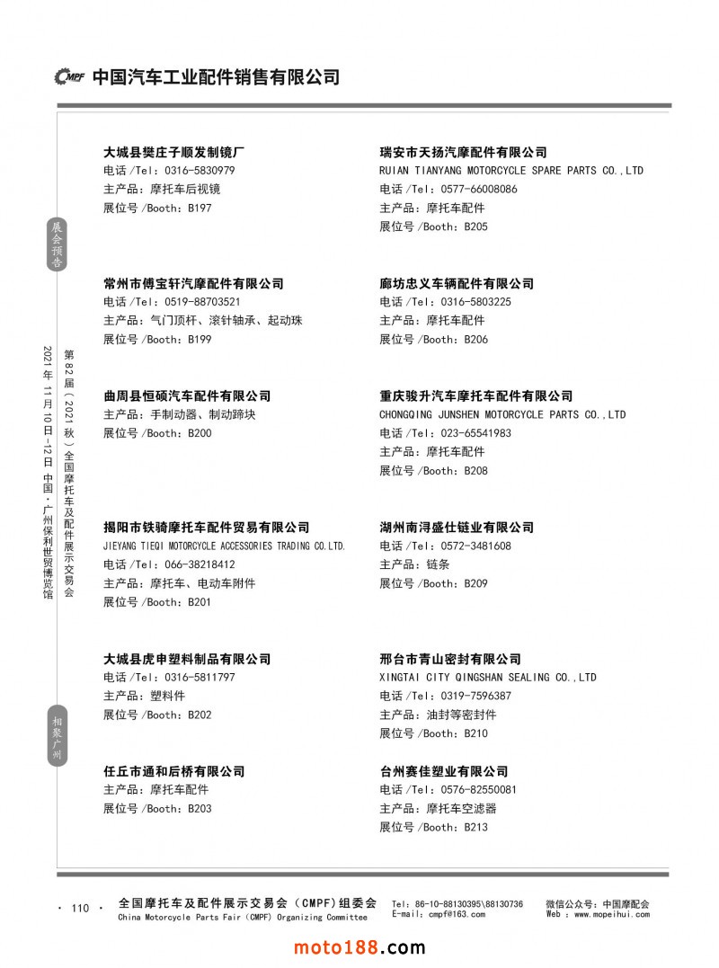 內110 第81屆(2021春)全國摩托車及配件展示交易會-杭州站參展企業信息