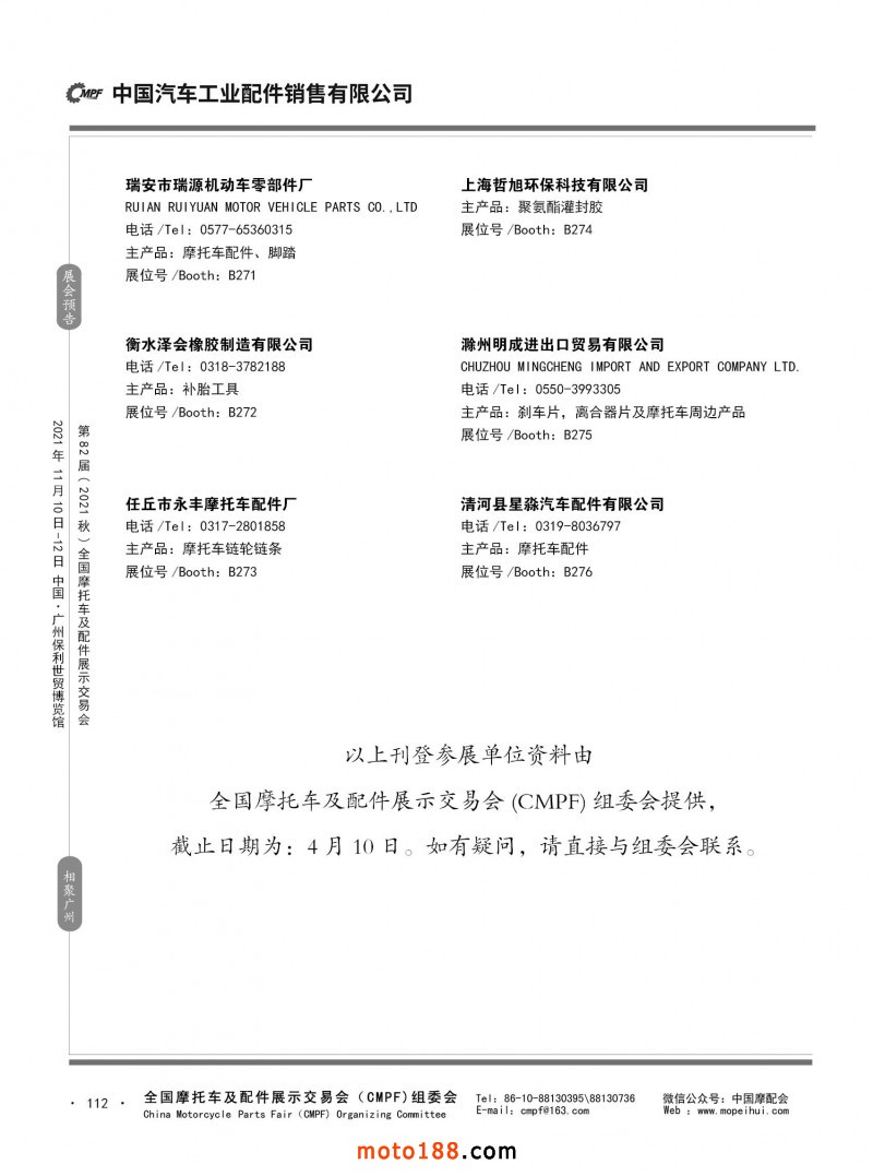 內112 第81屆(2021春)全國摩托車及配件展示交易會-杭州站參展企業信息