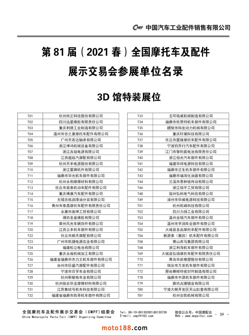 內59 第81屆(2021春)全國摩托車及配件展示交易會-杭州站參展單位名錄