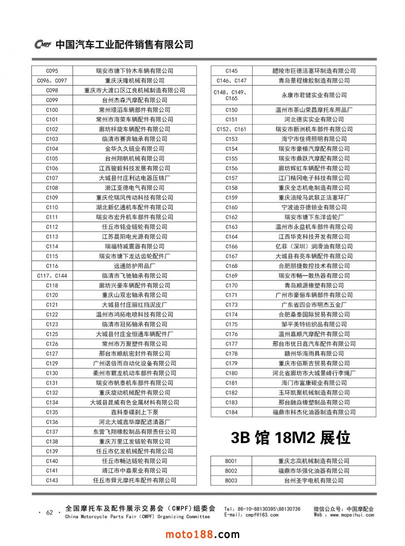 內62 第81屆(2021春)全國摩托車及配件展示交易會-杭州站參展單位名錄