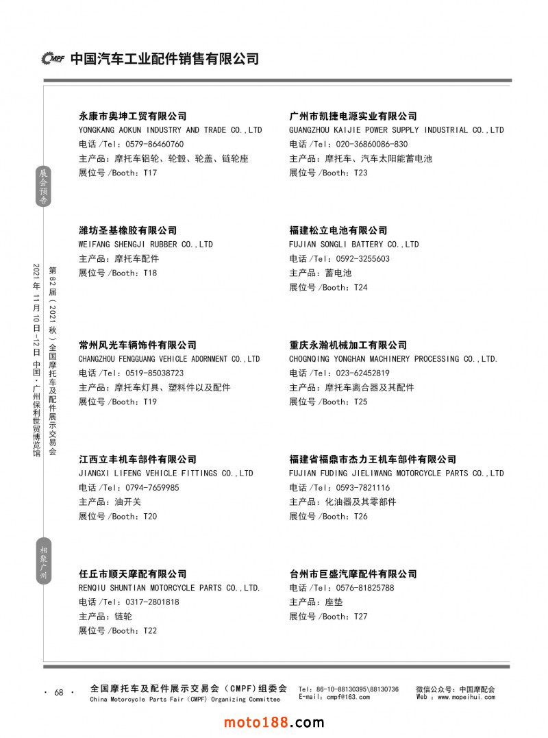 內68 第81屆(2021春)全國摩托車及配件展示交易會-杭州站參展企業信息