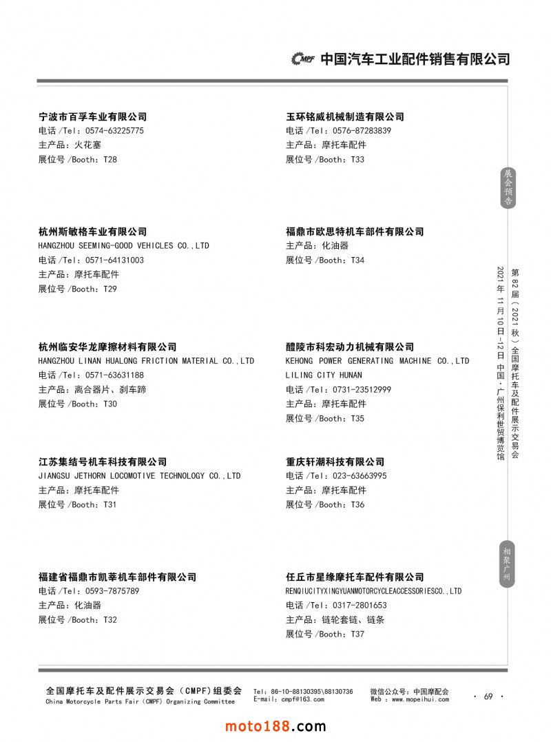 內69 第81屆(2021春)全國摩托車及配件展示交易會-杭州站參展企業信息