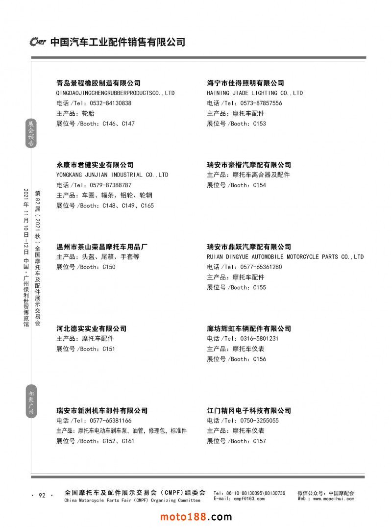 內92 第81屆(2021春)全國摩托車及配件展示交易會-杭州站參展企業信息