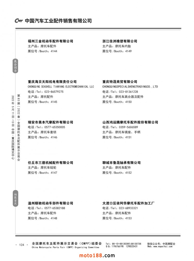 內124 第82屆(2021秋)全國摩托車及配件展示交易會-廣州站參展企業信息
