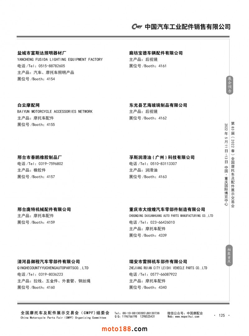 內(nèi)125 第82屆(2021秋)全國摩托車及配件展示交易會-廣州站參展企業(yè)信息