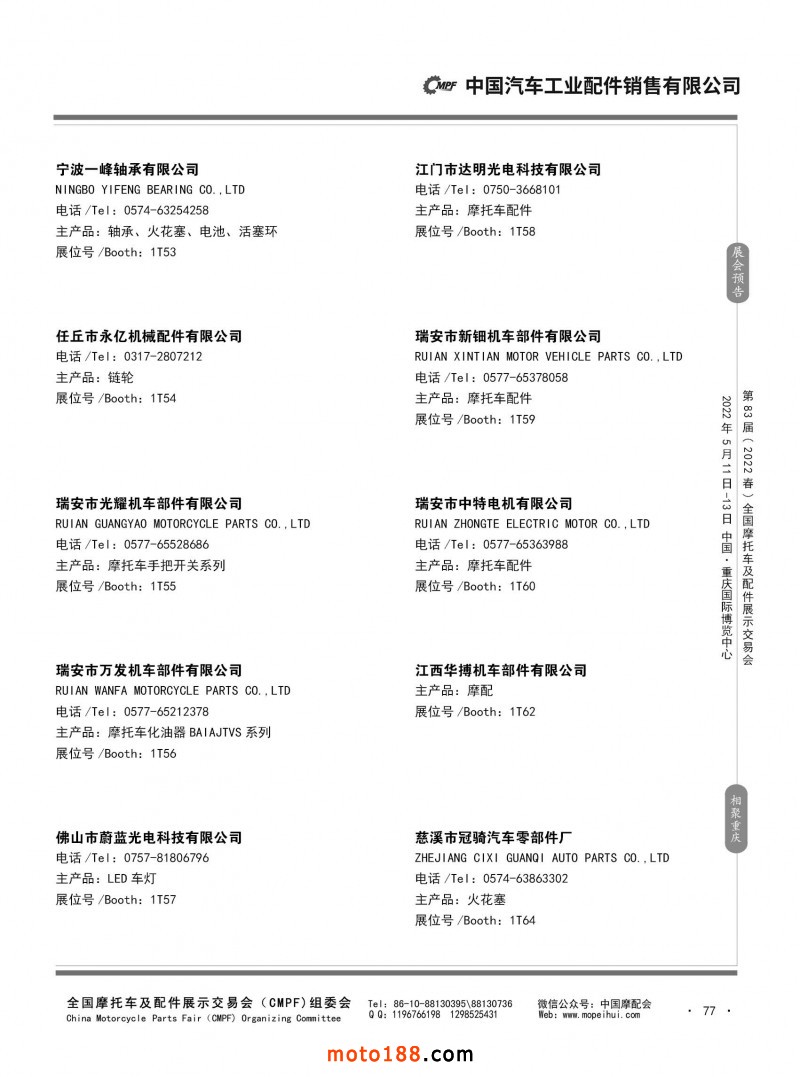 內77 第82屆(2021秋)全國摩托車及配件展示交易會-廣州站參展企業信息