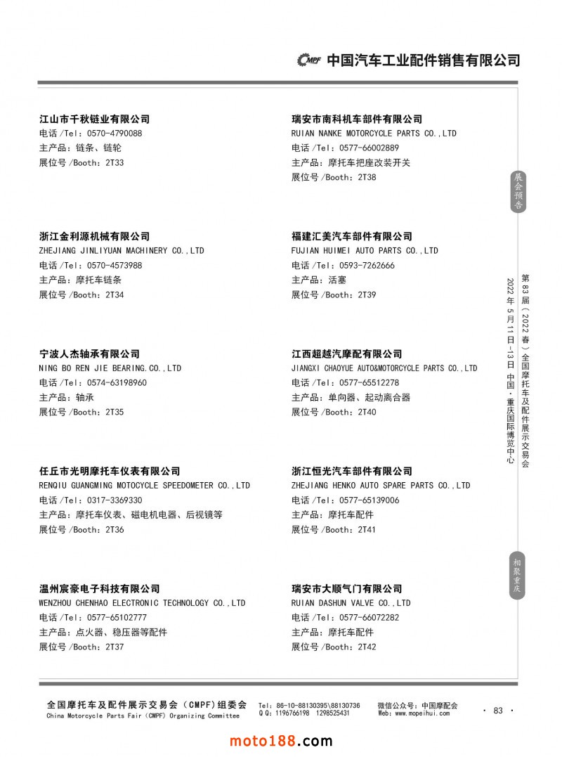 內83 第82屆(2021秋)全國摩托車及配件展示交易會-廣州站參展企業信息