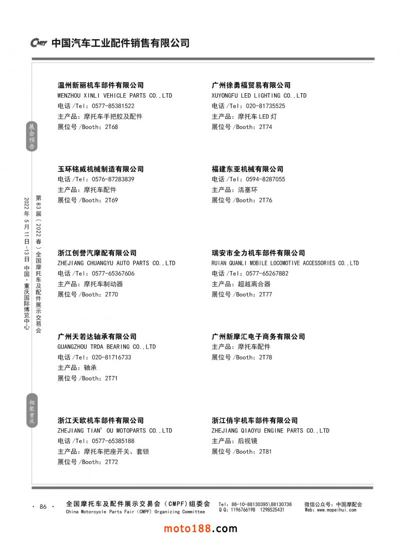 內86 第82屆(2021秋)全國摩托車及配件展示交易會-廣州站參展企業信息