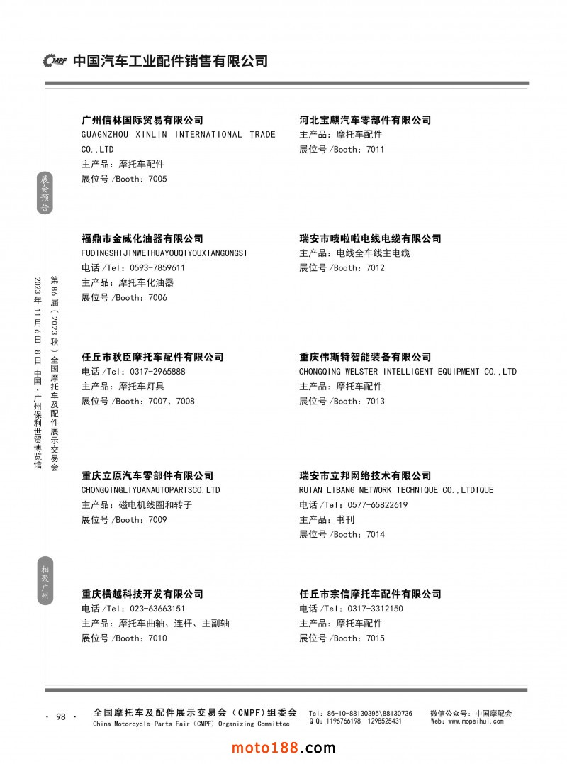內80-176 第85屆(2023春)全國摩托車及配件展示交易會-重慶站參展企業信息