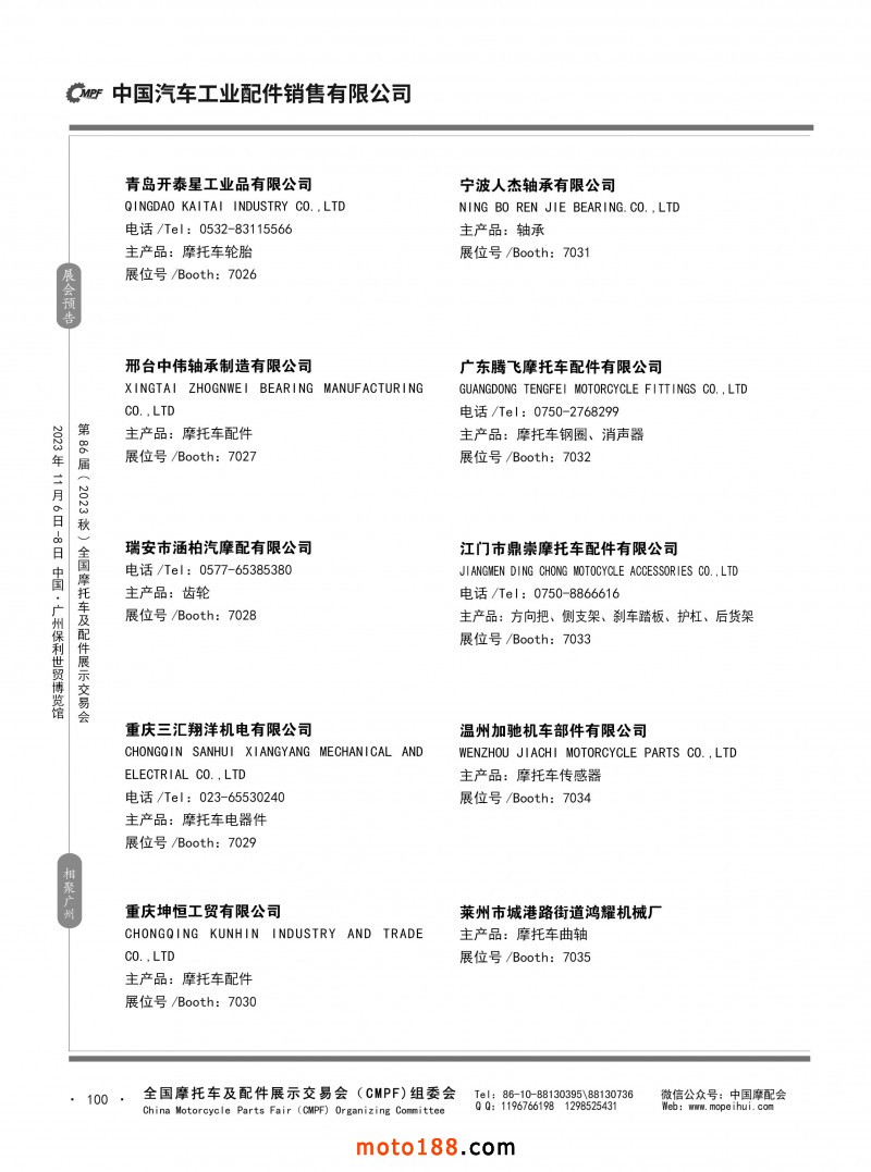內80-176 第85屆(2023春)全國摩托車及配件展示交易會-重慶站參展企業信息