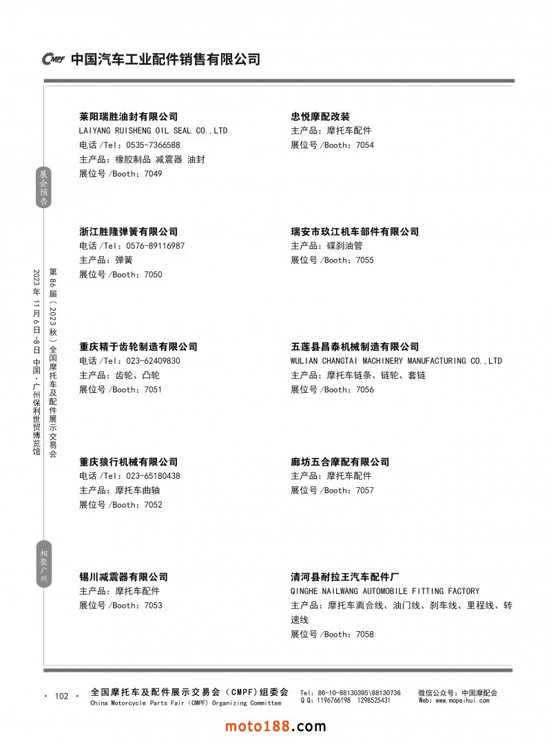 內(nèi)80-176 第85屆(2023春)全國(guó)摩托車及配件展示交易會(huì)-重慶站參展企業(yè)信息