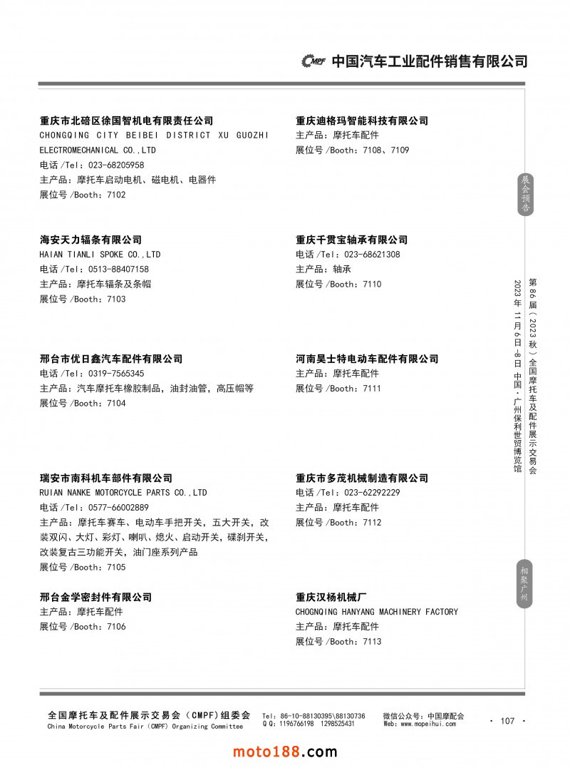 內80-176 第85屆(2023春)全國摩托車及配件展示交易會-重慶站參展企業信息