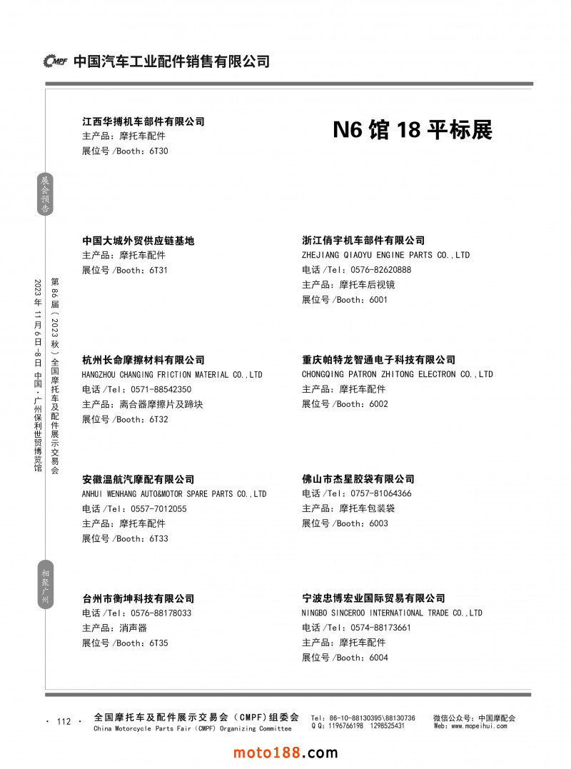 內80-176 第85屆(2023春)全國摩托車及配件展示交易會-重慶站參展企業信息