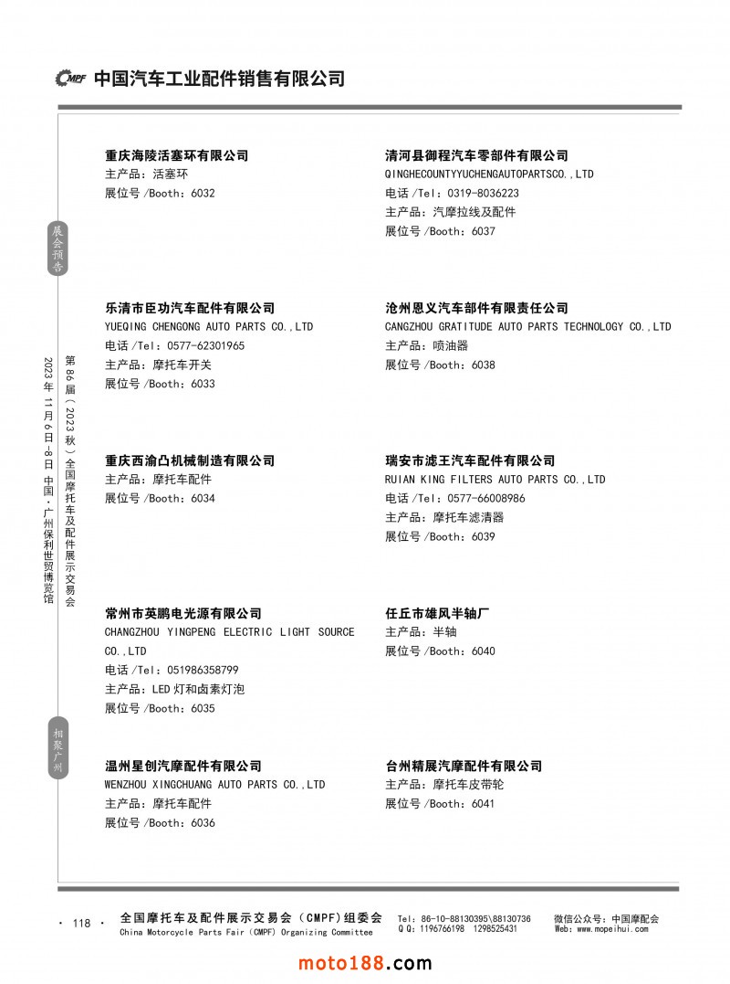 內(nèi)80-176 第85屆(2023春)全國(guó)摩托車(chē)及配件展示交易會(huì)-重慶站參展企業(yè)信息
