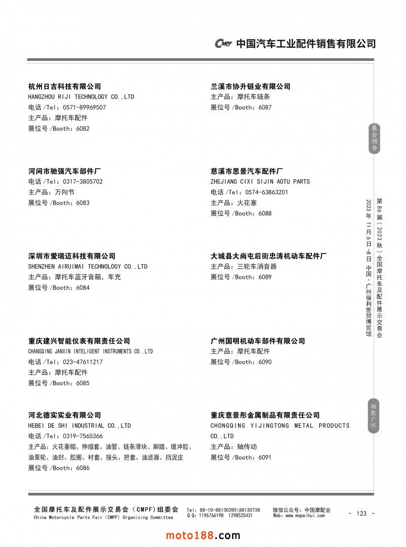 內(nèi)80-176 第85屆(2023春)全國(guó)摩托車及配件展示交易會(huì)-重慶站參展企業(yè)信息