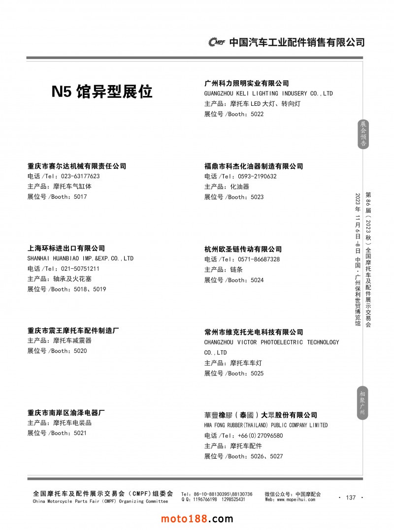 內80-176 第85屆(2023春)全國摩托車及配件展示交易會-重慶站參展企業信息