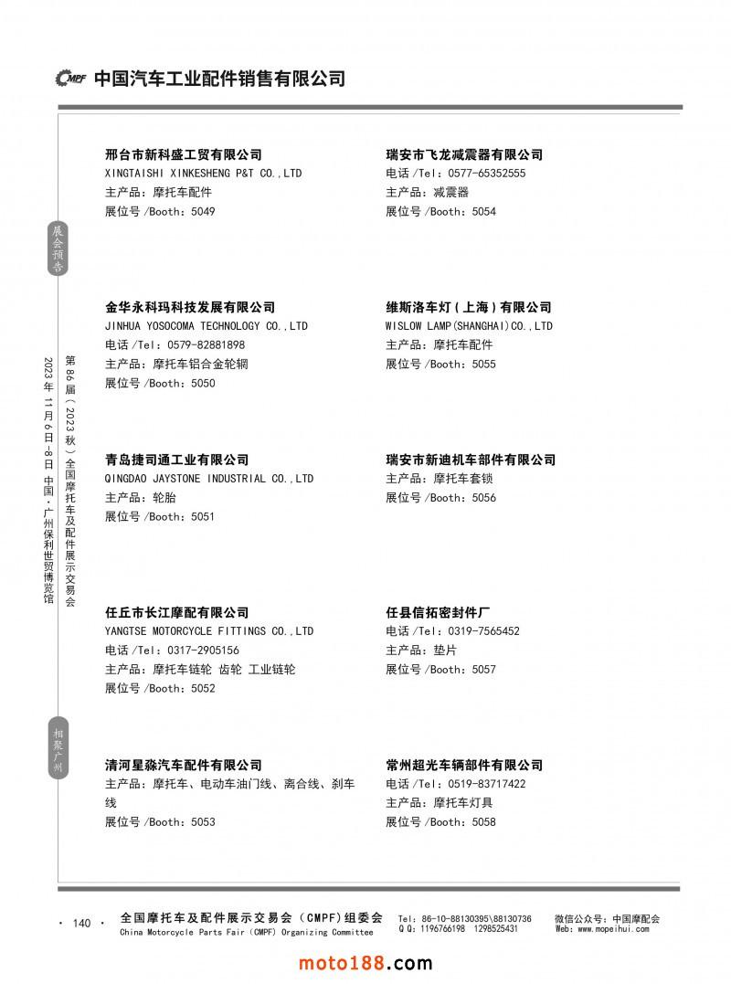 內80-176 第85屆(2023春)全國摩托車及配件展示交易會-重慶站參展企業(yè)信息
