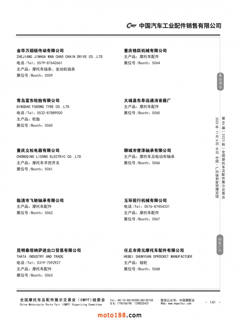 內80-176 第85屆(2023春)全國摩托車及配件展示交易會-重慶站參展企業信息
