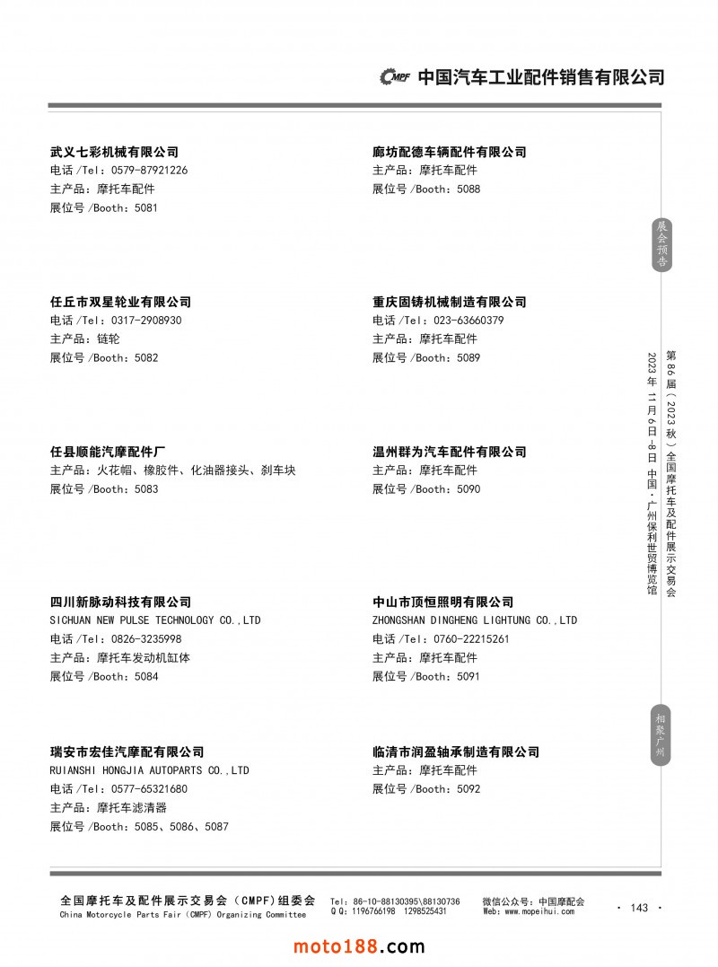 內80-176 第85屆(2023春)全國摩托車及配件展示交易會-重慶站參展企業信息