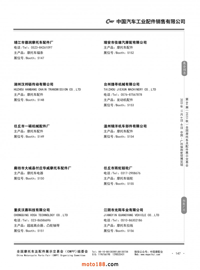 內80-176 第85屆(2023春)全國摩托車及配件展示交易會-重慶站參展企業(yè)信息