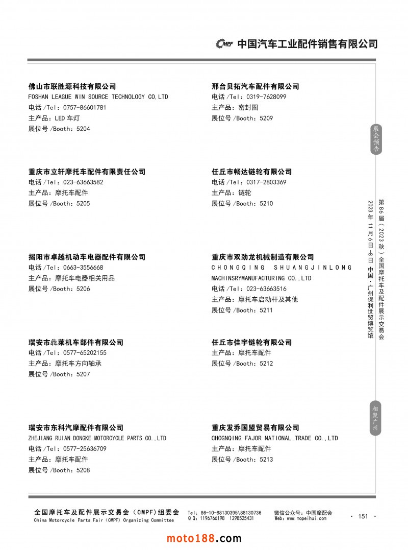 內(nèi)80-176 第85屆(2023春)全國摩托車及配件展示交易會-重慶站參展企業(yè)信息