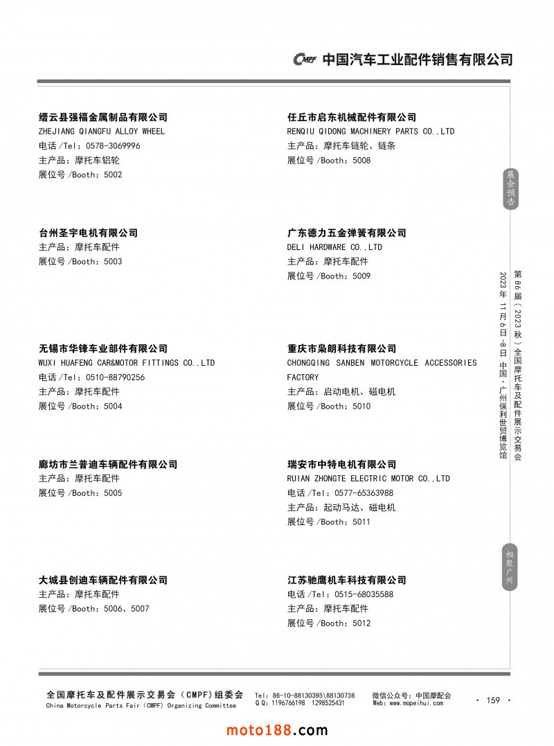 內(nèi)80-176 第85屆(2023春)全國摩托車及配件展示交易會-重慶站參展企業(yè)信息