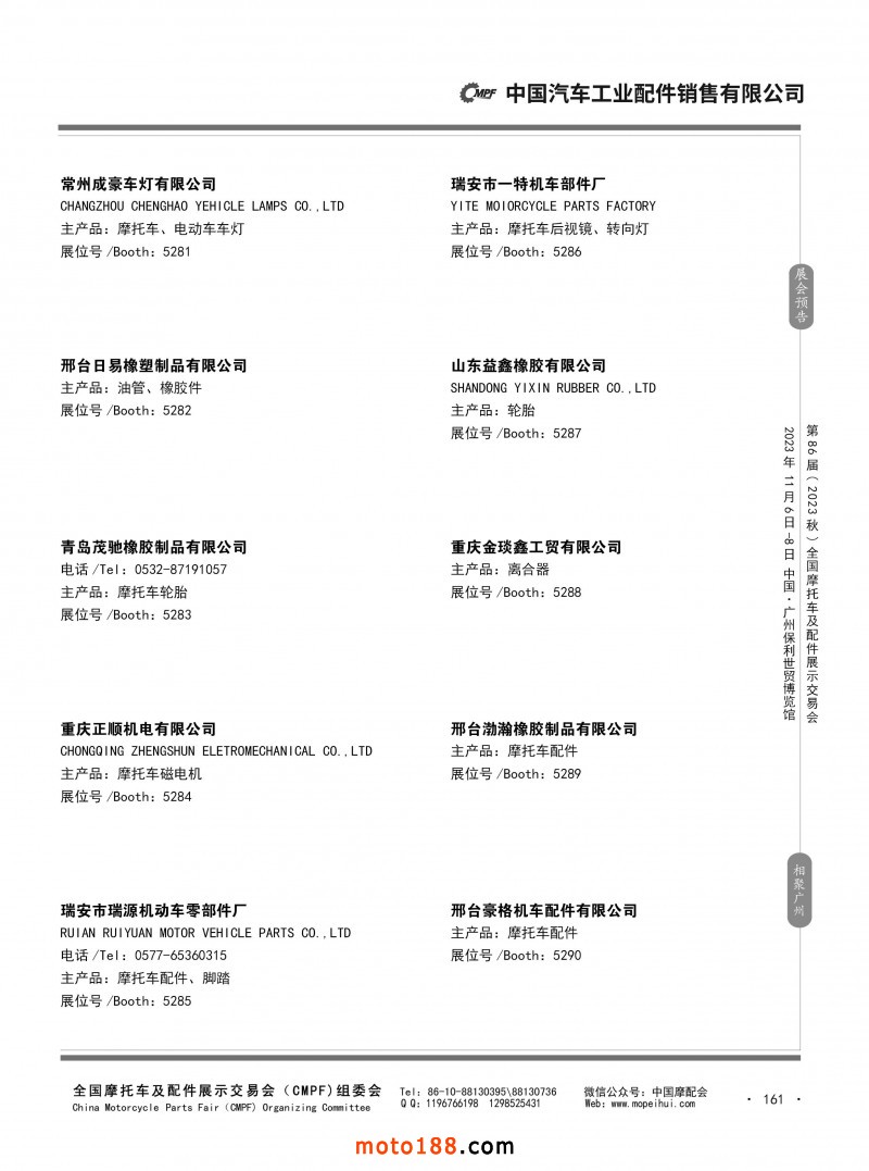 內(nèi)80-176 第85屆(2023春)全國(guó)摩托車(chē)及配件展示交易會(huì)-重慶站參展企業(yè)信息