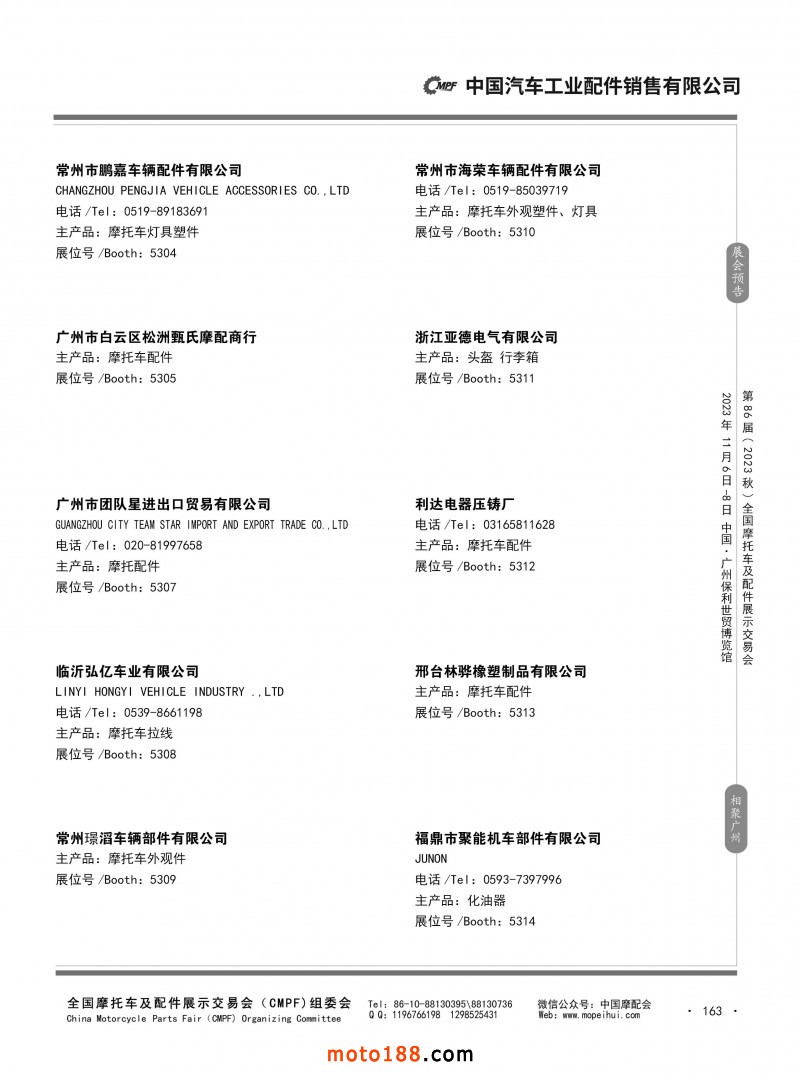 內80-176 第85屆(2023春)全國摩托車及配件展示交易會-重慶站參展企業信息