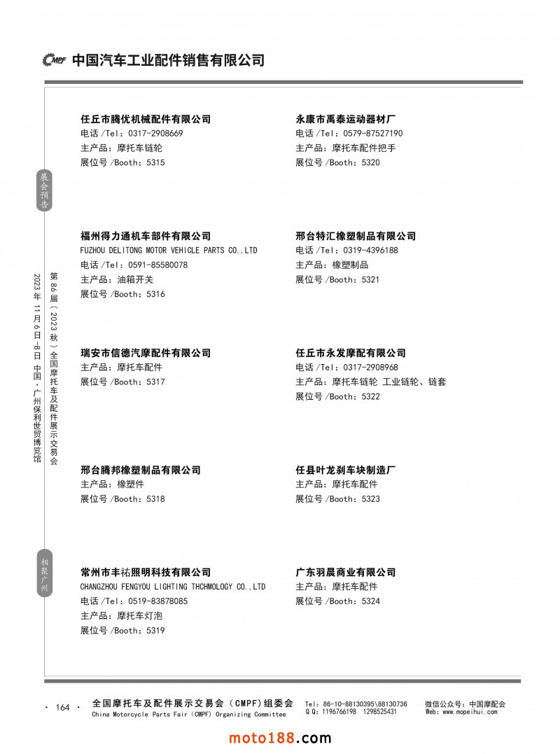 內80-176 第85屆(2023春)全國摩托車及配件展示交易會-重慶站參展企業信息