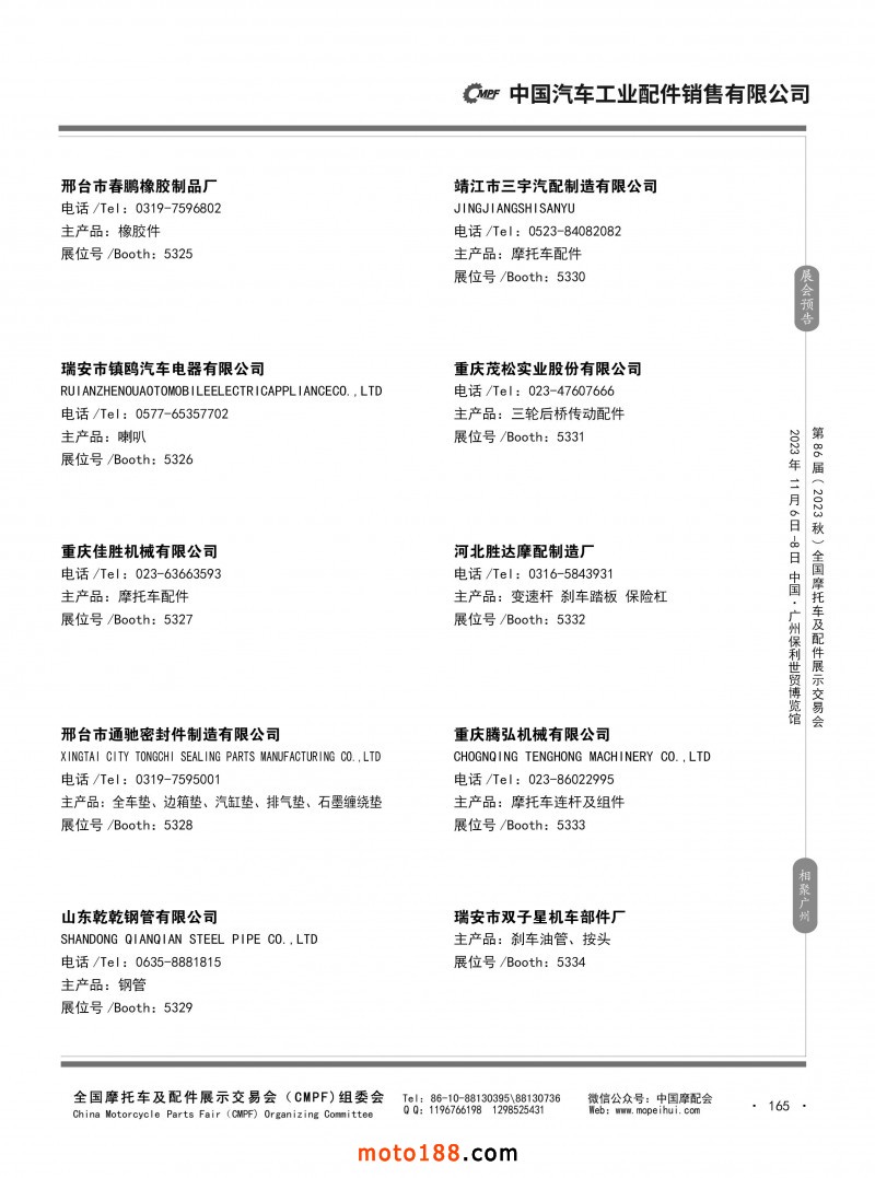 內(nèi)80-176 第85屆(2023春)全國摩托車及配件展示交易會-重慶站參展企業(yè)信息