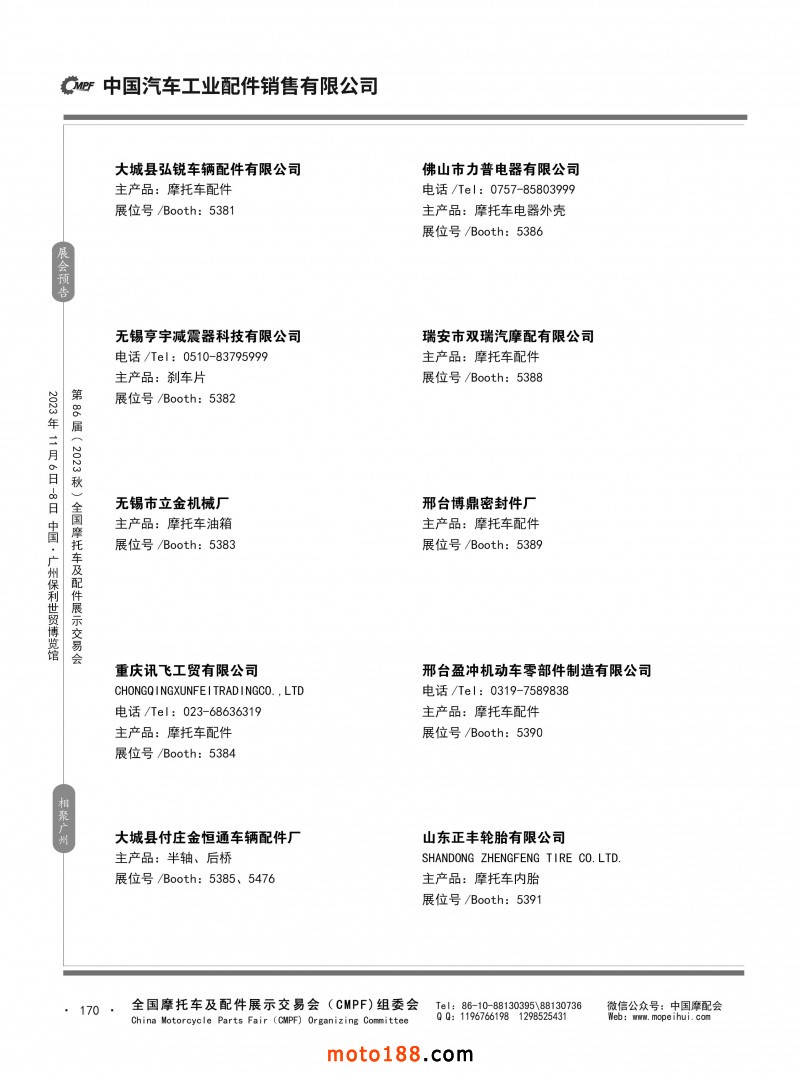 內80-176 第85屆(2023春)全國摩托車及配件展示交易會-重慶站參展企業(yè)信息