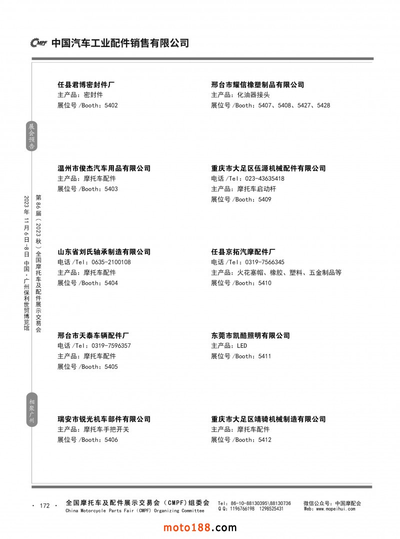 內(nèi)80-176 第85屆(2023春)全國(guó)摩托車及配件展示交易會(huì)-重慶站參展企業(yè)信息