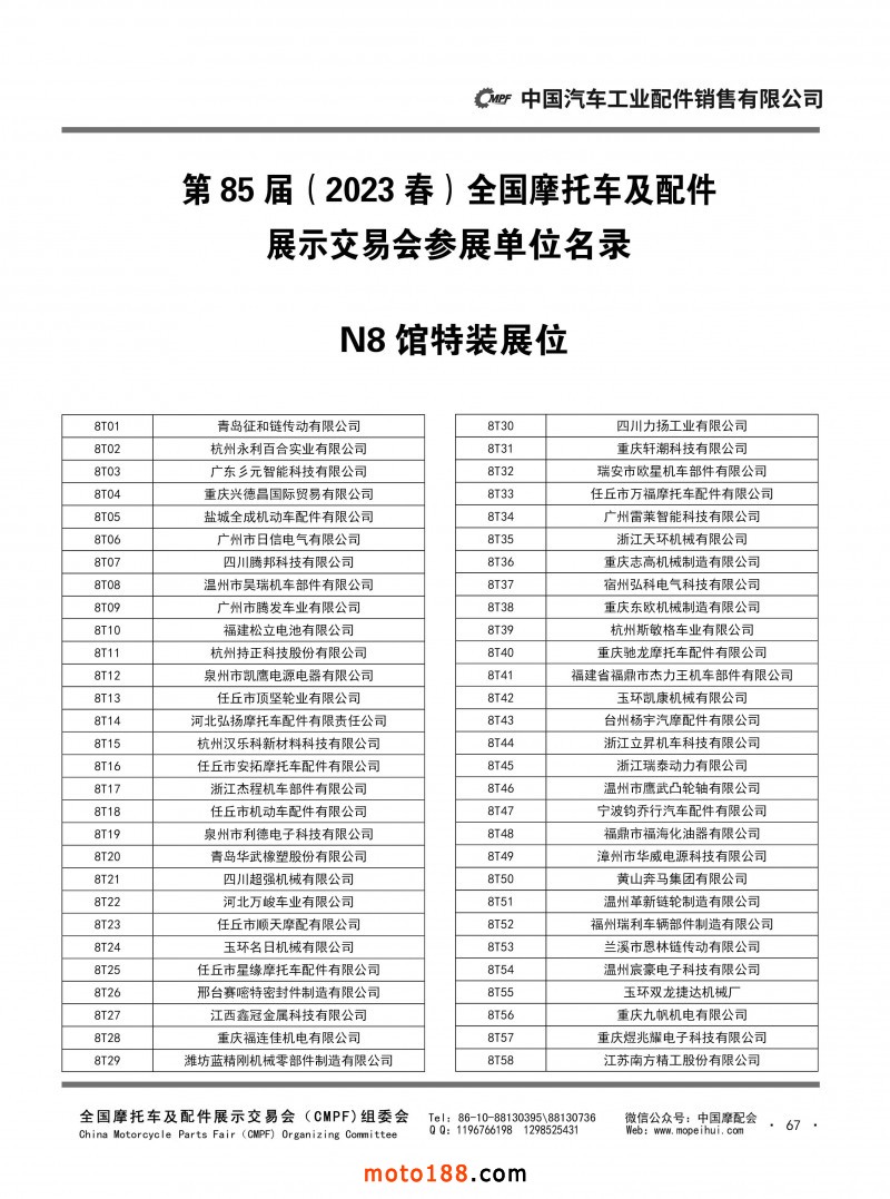 內(nèi)67-79 第85屆(2023春)全國(guó)摩托車及配件展示交易會(huì)-重慶站參展單位名錄