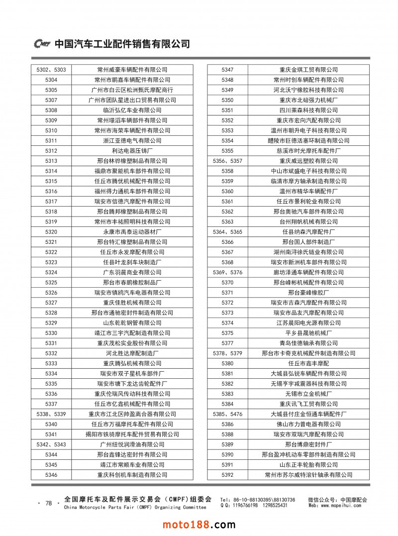 內(nèi)67-79 第85屆(2023春)全國(guó)摩托車(chē)及配件展示交易會(huì)-重慶站參展單位名錄