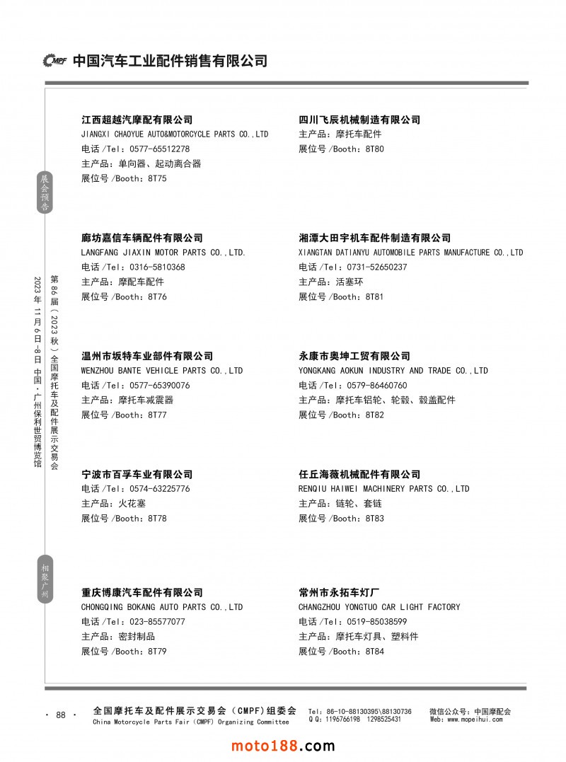 內(nèi)80-176 第85屆(2023春)全國(guó)摩托車及配件展示交易會(huì)-重慶站參展企業(yè)信息