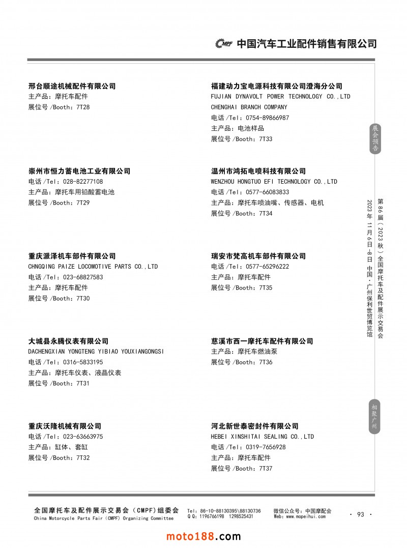 內80-176 第85屆(2023春)全國摩托車及配件展示交易會-重慶站參展企業信息