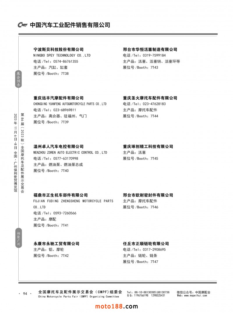 內(nèi)80-176 第85屆(2023春)全國(guó)摩托車及配件展示交易會(huì)-重慶站參展企業(yè)信息