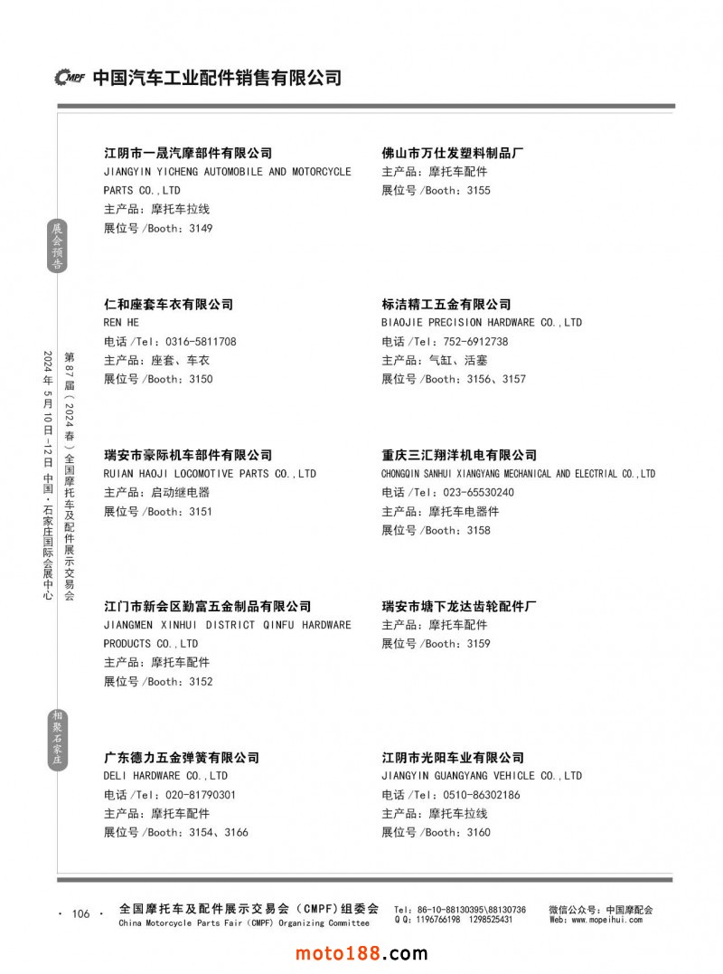 第86屆(2023秋)全國(guó)摩托車(chē)及配件展示交易會(huì)-廣州站參展企業(yè)信息