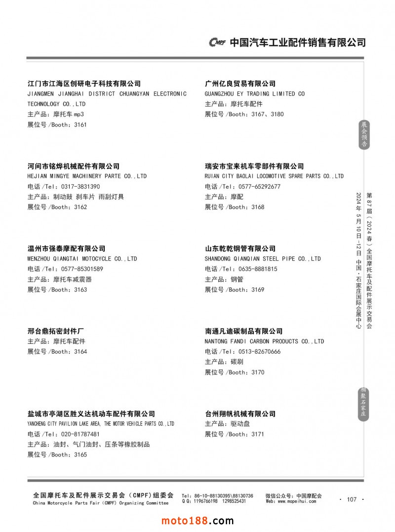 第86屆(2023秋)全國摩托車及配件展示交易會-廣州站參展企業信息