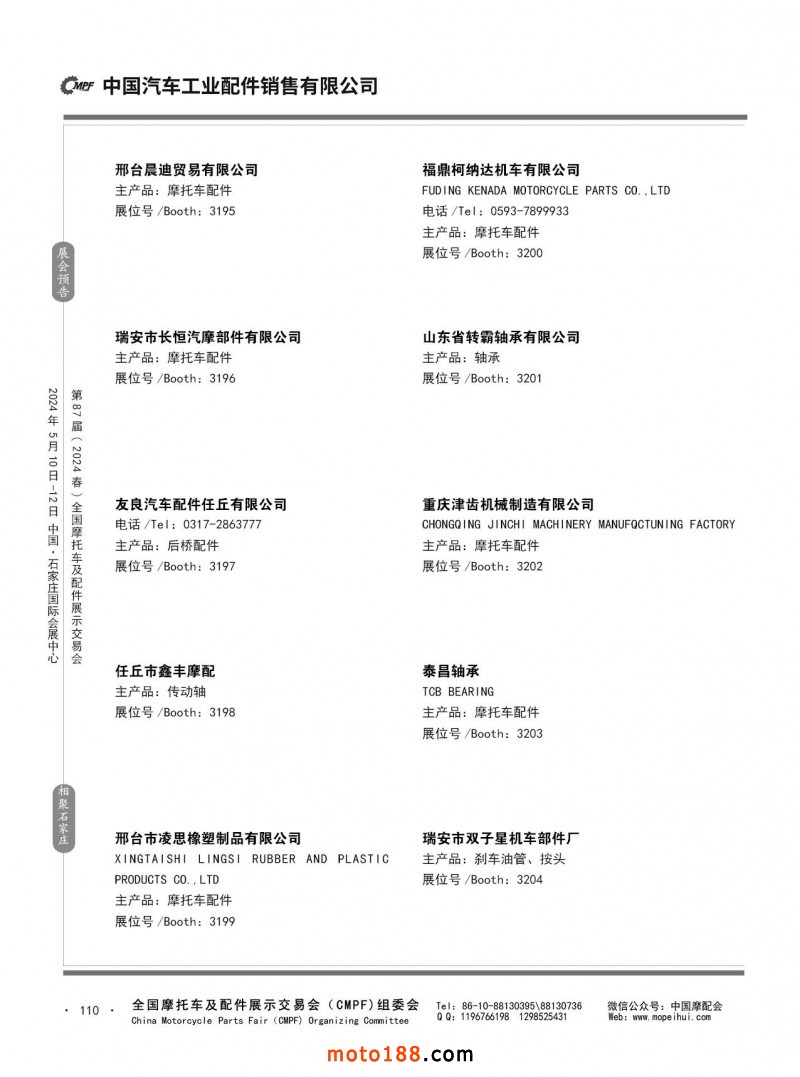 第86屆(2023秋)全國摩托車及配件展示交易會-廣州站參展企業信息