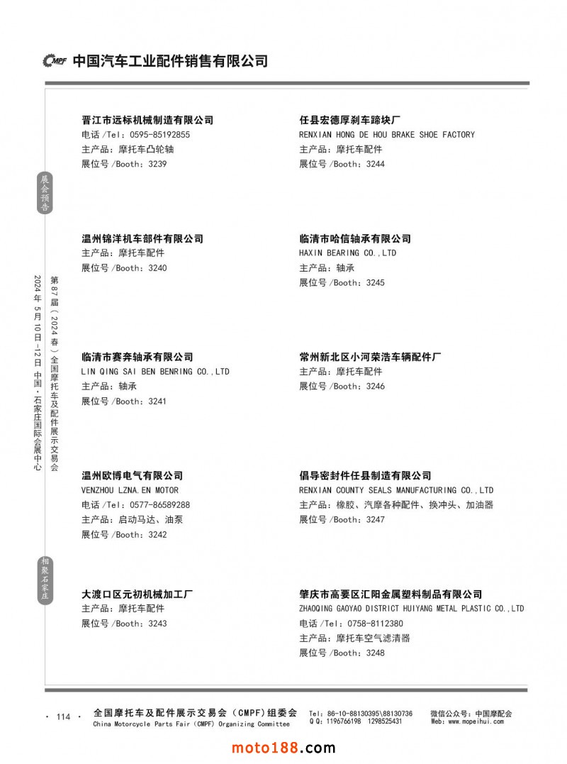 第86屆(2023秋)全國摩托車及配件展示交易會-廣州站參展企業信息