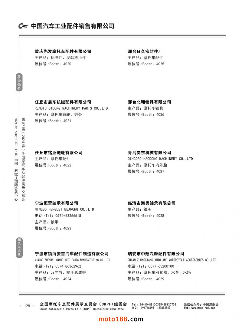 第86屆(2023秋)全國摩托車及配件展示交易會-廣州站參展企業(yè)信息