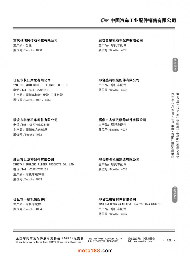 第86屆(2023秋)全國摩托車及配件展示交易會-廣州站參展企業信息
