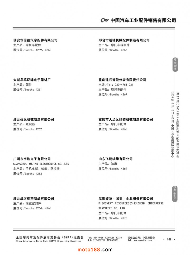 第86屆(2023秋)全國摩托車及配件展示交易會-廣州站參展企業信息