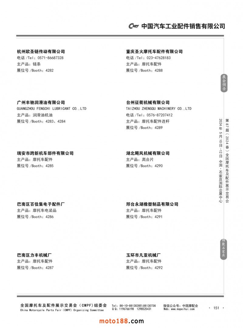 第86屆(2023秋)全國摩托車及配件展示交易會-廣州站參展企業信息
