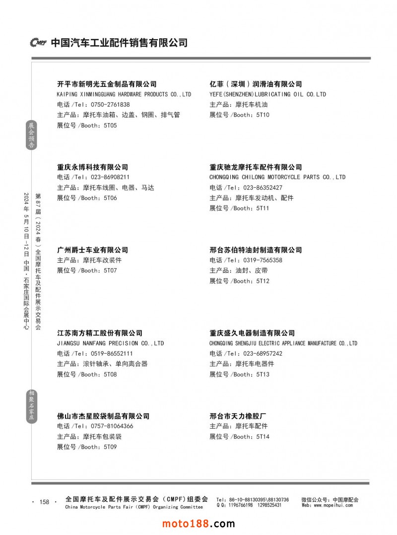 第86屆(2023秋)全國摩托車及配件展示交易會(huì)-廣州站參展企業(yè)信息