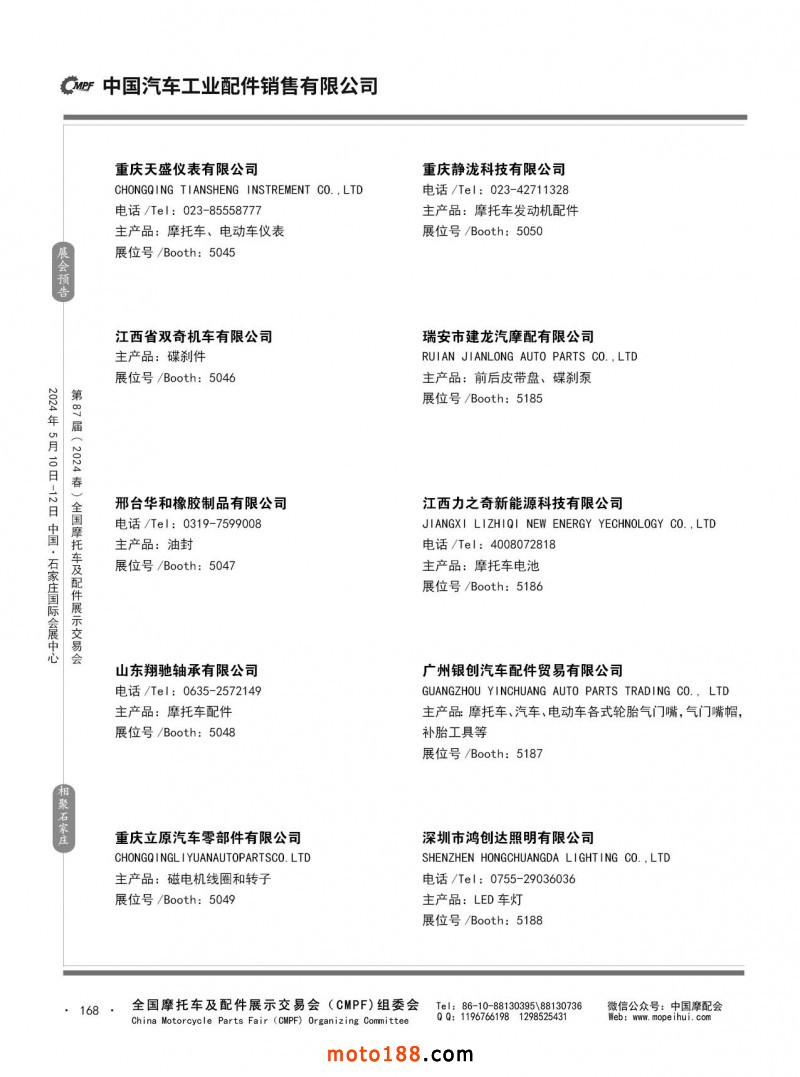 第86屆(2023秋)全國摩托車及配件展示交易會-廣州站參展企業信息